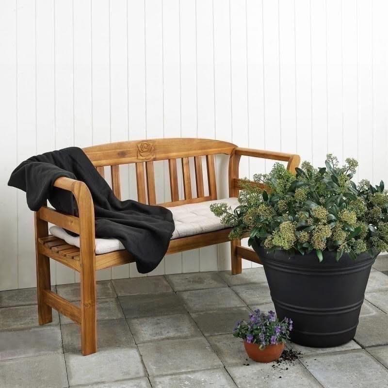 Klassisk havebænk med udskåret rose på rygstykket